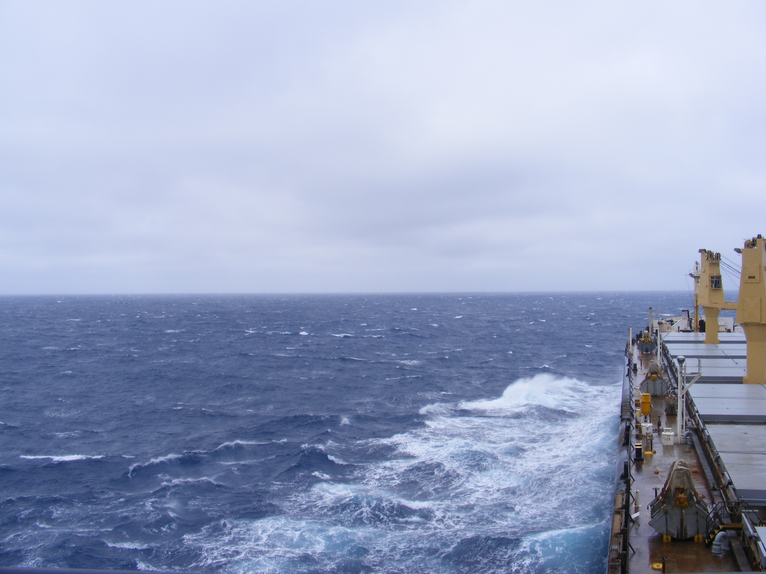 Jack London is quoted as saying something like "Of all the creatures upon land and sea it is ships alone that cannot be taken on barren pretenses, that will not put up with bad art from their master". We can not blindly plow our way through the vast oceans expecting that the tens of thousands of tons of steel we ride upon will conquer anything it encounters. Sitting at the dock a ship seems like a massive beast, it dwarfs the human scale; this ship with her cargo weighs 42,000 tons which is small by ship standards, and yet upon the ocean it is but a speck of dust. We forget about the size of the world; email and telephones help disguise this vast planet but aboard the Moku Pahu it took us 135 days to crawl around the middle of the planet and it is taking us 20 days to transit the Pacific en route from San Francisco to Inch'on South Korea.